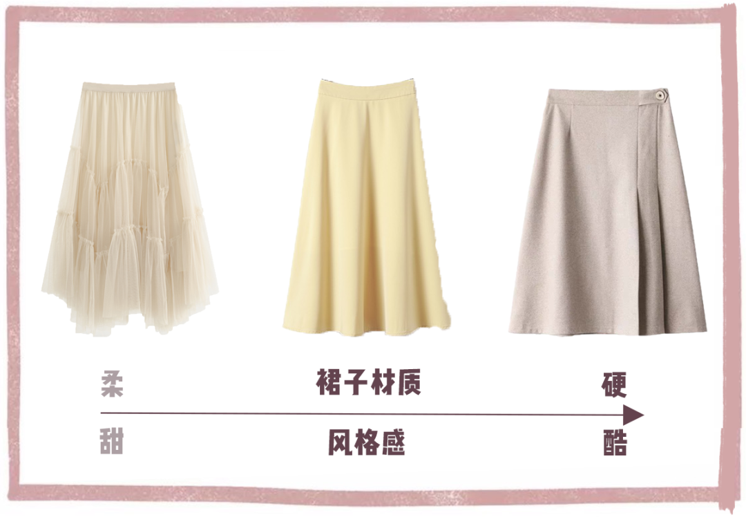 越柔软的面料裙子风格就越甜美,而面料越硬给人的感觉就会越酷越气场👇