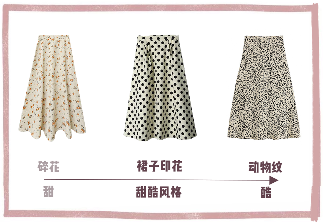 如果你爱穿纯色裙,其实上面3点判断就够了。但如果想要来点花样,那还得注意下印花。