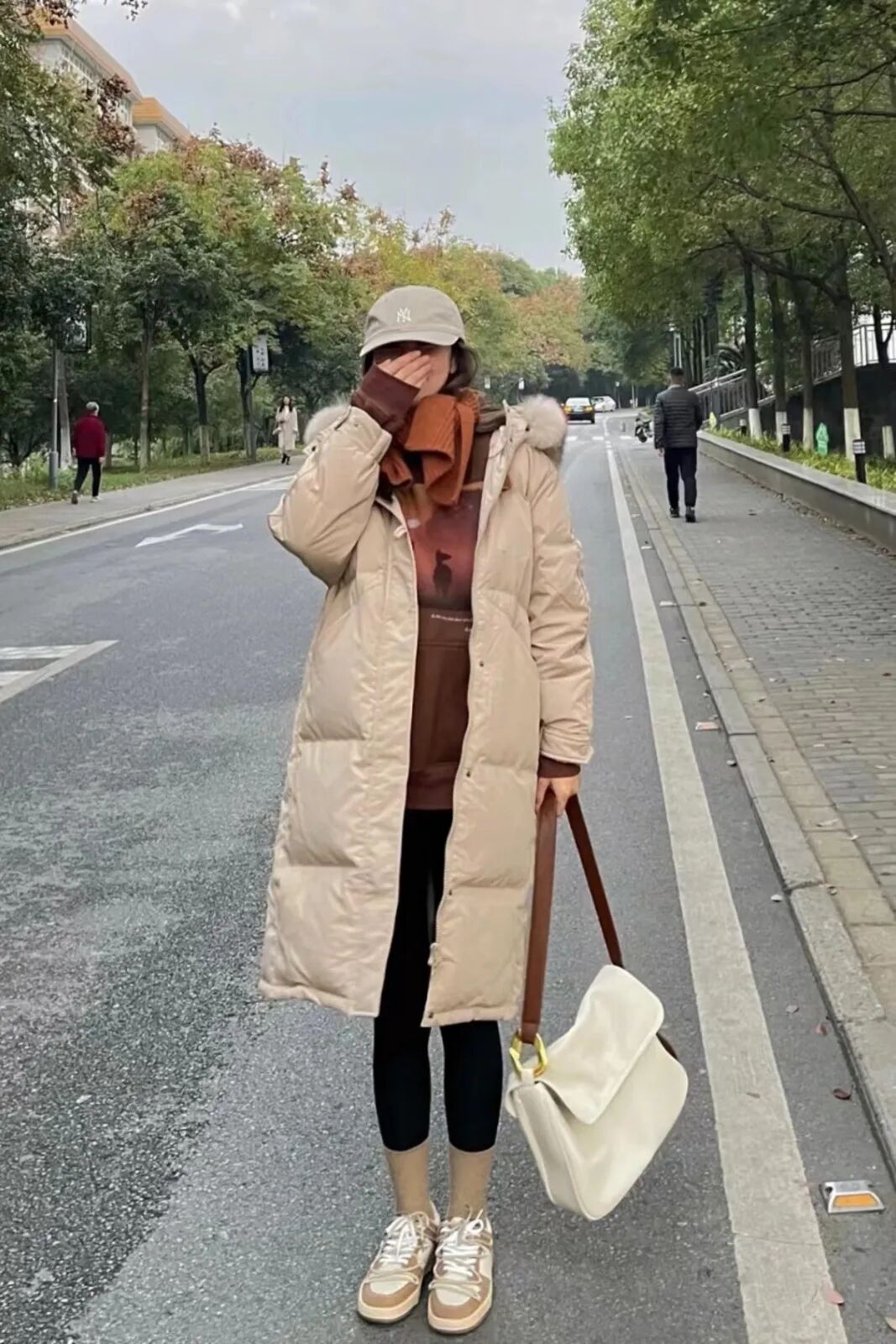 从保暖开始做起功课,top选手可不得是羽绒服!虽说有些会显厚,但挑选足够保暖的材质绒,再挑选能修饰身形的长款就能达到我们想要的事半功倍喇!👇