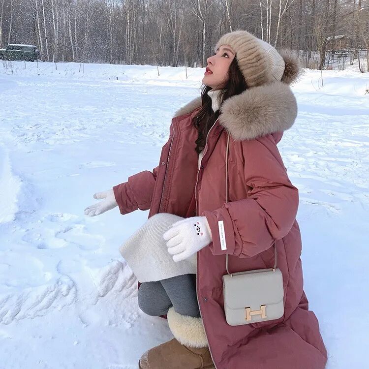 搭配方面,这种长款羽绒服搭牛仔裤、鲨鱼裤、打底裤、美丽的裙子...怎么搭都不出错。