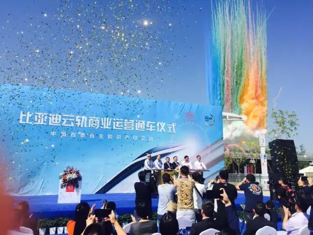 比亚迪2016年10月13日宣布进军轨道交通市场,首款云轨产品在深圳坪山新区进行通车试验。开放总里程4.4公里,时速可达每小时80公里。