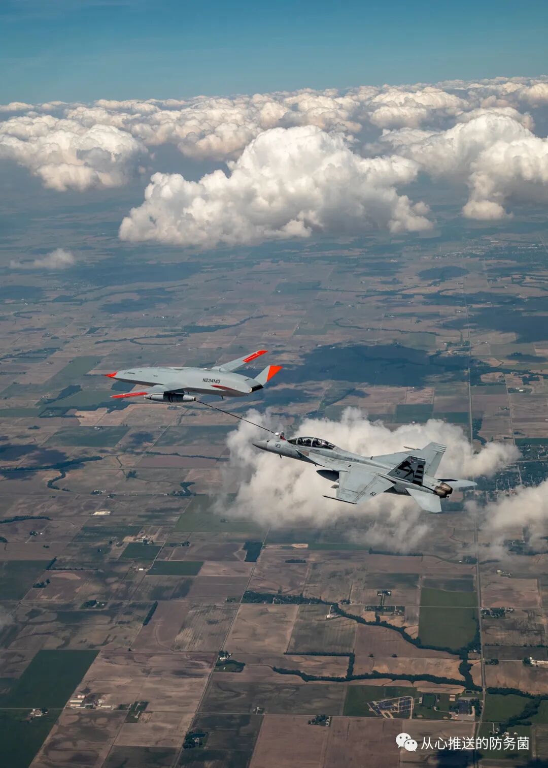 在本轮测试中,除了空中加油外,还包括评估有人和无人资产之间的编队飞行,MQ-25验证机与F/A-18战斗机之间的距离只有20英尺。其他测试点包括跟踪加油套头——MQ-25拖曳的伞状锥套,与受油机的标准加油探针相连。据波音公司称,两架飞机都是以与真实作战相关的速度和高度飞行的。