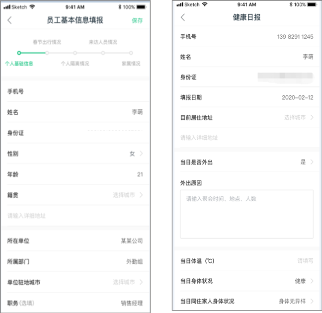 航小慧作为针对疫情阶段为多类型组织机构提供的管控工具,面向的用户群体包括社区、大型集团公司、学校等组织。不同的用户群体在针对疫情管控的方向不同,重点不同,导致了填报的单据模版需求不同。航小慧为了解决各个组织的管控点不同的问题,通过设计可个性化定制填报单据,实现多组织的不同管控需求。