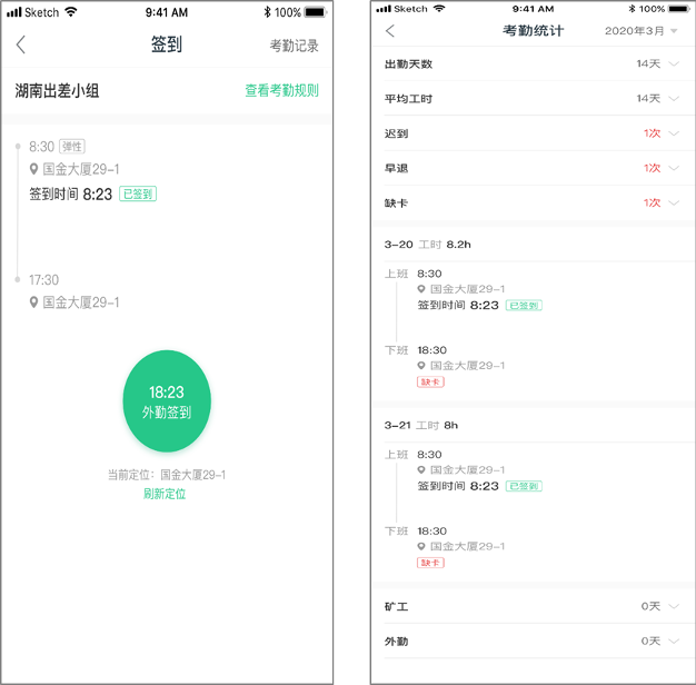 6、出行定位管理,通过移动签到对自己的定位进行上报,移动端一键移动签到,实时统计数据,支持针对签到情况按组织体系进行统计分析。