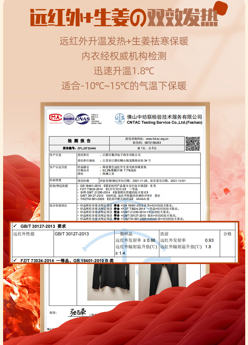 5A级的抑菌抗菌保暖衣。