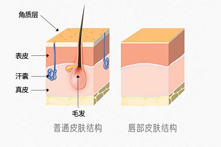 唇部无皮脂膜,角质层又薄,