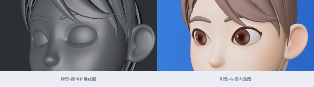 1、组合的实现方式:最初在模型阶段,眉毛、睫毛等都是用子模型的方式构建,表情捕捉绑定后,这些子模型都可以与表情联动,但在捏脸功能上,想要替换眉形、眉毛样式,子模型就无法跟随表情联动。需要将眉毛雕刻成不同的眉形,存成Blendshape,在眉毛这种形态较为概括的模型上是可行的,但睫毛形态比较细节,通过雕刻变形不太可行,我们想到在足够大的眼周片状模型上贴图来实现,通过引擎测试后,证明这个方法是可行的。2、联动的实现方式:在捏脸功能上我们设计了眼睛大小、眼睛角度、眼睛位置的变形参数,睫毛模型需要与眼睛变化同步,当眼睛调整时,可以同时呈现眼睛和睫毛两个Blendshape对应参数的效果。3、与研发同学寻找新思路:引擎中的效果实现还要结合脚本编写,我们和研发同学一起研究了眼球跟随和固定头部/AR效果切换的制作方法,在此暂不展开,感兴趣的同学可以私信留言哦~建立性能标准