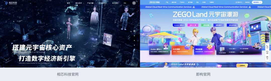 在B端音视频领域,即构、相芯两家抢先入场,已具有相对成熟的解决方案。即构官网给元宇宙相关产品极大曝光,相芯更是将品牌升级为“元宇宙搭建者”,可见友商投入之大,这也给了我们很大压力。