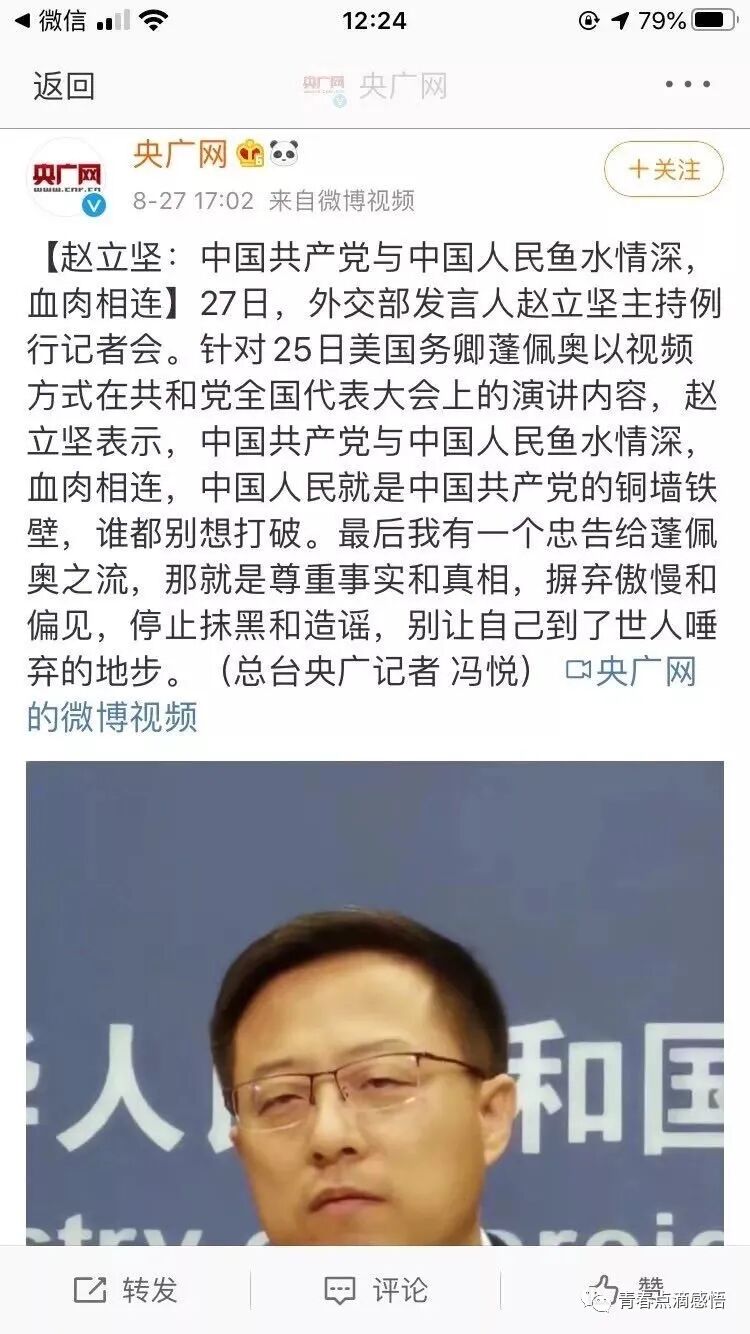 其实这句话也不能细致探讨,一深说就犯忌。虽然事实上我们都知道这么回事,赵立坚也知道这么回事,赵立坚也知道我们知道这么回事,我们也知道赵立坚知道我们知道这么回事......但,一旦说出来,就变味了,总是让人感觉不是滋味,有种被那啥的感觉。所以很多人就憋不住的在下面留言。你一言我一语,说的全是机锋十足,直捣黄龙。