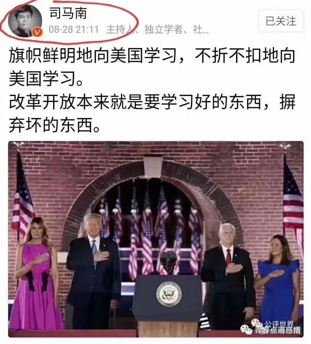 还有司马南、胡锡进之流,他们一阵风一阵雨,昨天刚刚恨美国恨之入骨,今天就能爱美国死去活来。他们想一出说一出,我们如果跟着他的节奏走,再不晕车的人也要晕头转向,觉得一点方向感没有。