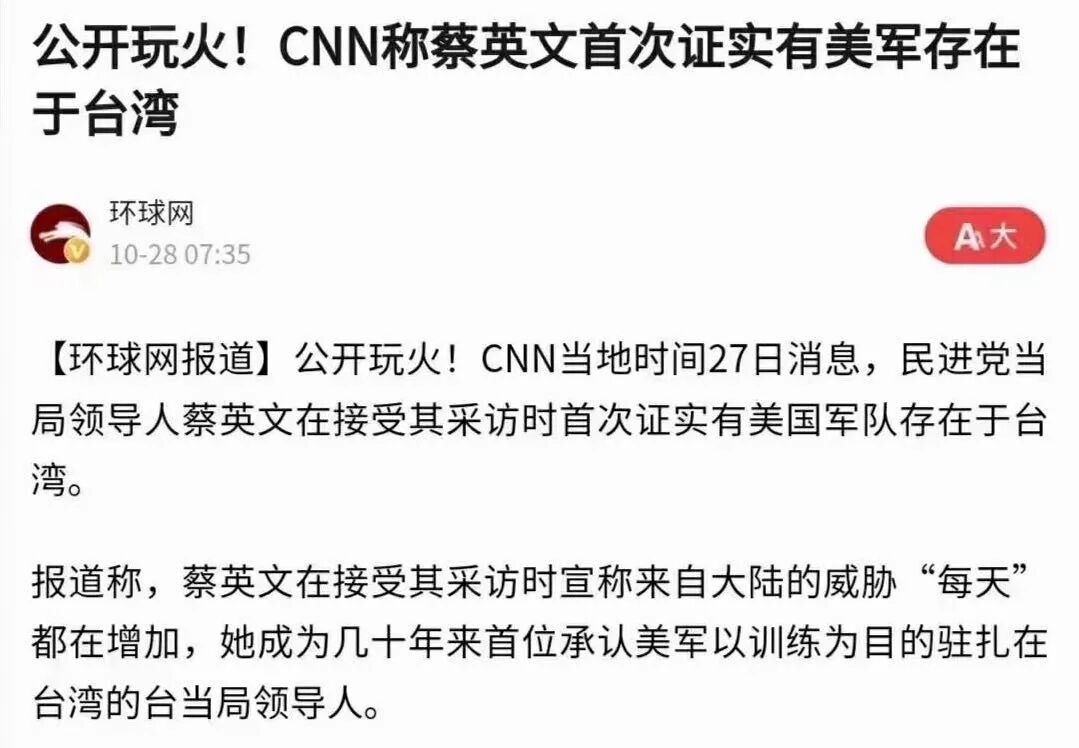 蔡英文“自爆”有美军在台湾,这是什么意思呢?说穿了就是两字:壮胆;或5个字:破罐子破摔!意思是,我就这样说了这个事实情况,你们能怎么着?大有一种脖子一硬,不管不顾的气势。