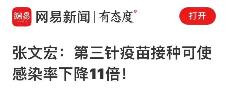 曾经对进口车和国产车作过妙喻的张文宏,也一直鼓励大家打疫苗,并以专业身份给出专业的数字:第三针疫苗接种可使感染率下降11倍。