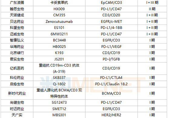 (1)不对称IgG类双抗(7个,占41.2%,包括:M802和M701;KN026;MBS301, IBI318, IBI315;KN046;