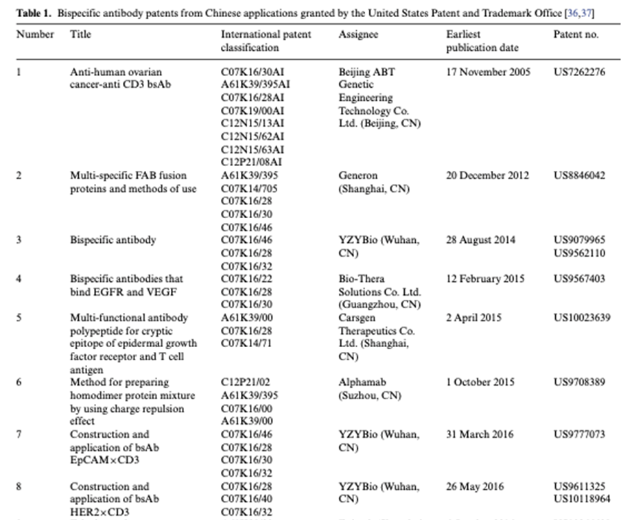 图表27:美国专利局授予的中国申请的双特异性抗体专利