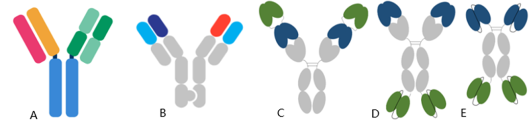 C、D、E形式也是常用的形式,不存在知识产权的问题。多种的双抗平台使得海徕科可以根据不同的靶点,灵活采用最佳形式,达到功效最优;而不是只采用一种形式,不管他是否对确定的靶点最优。