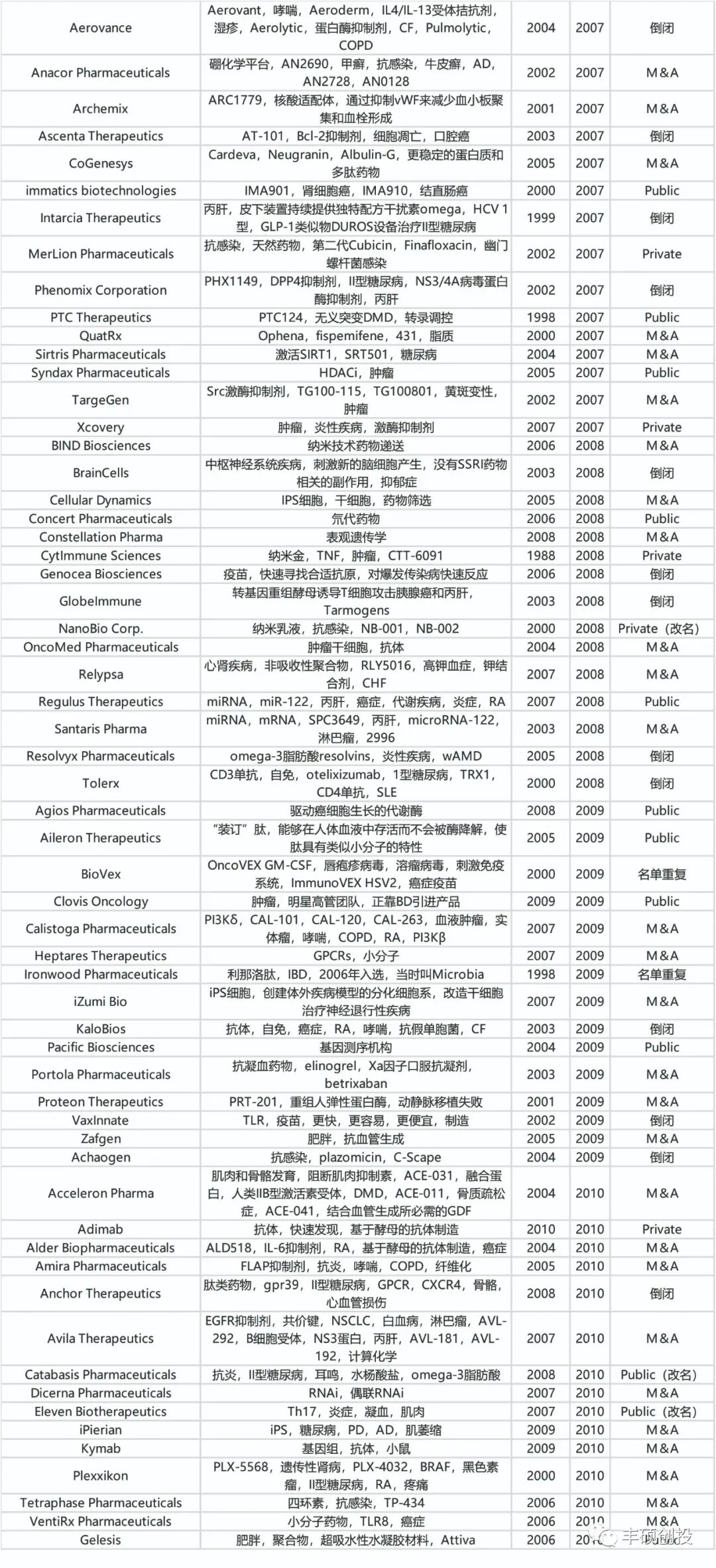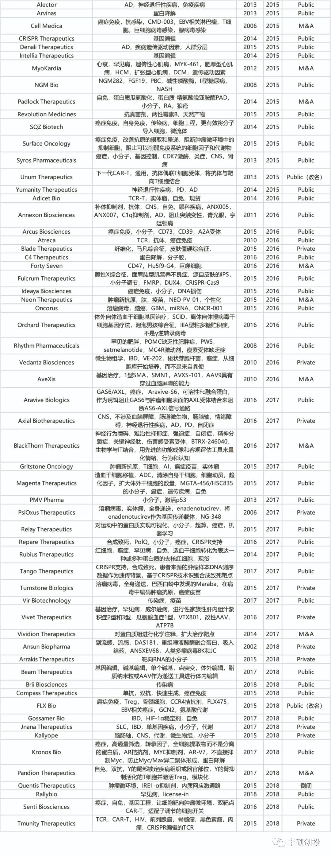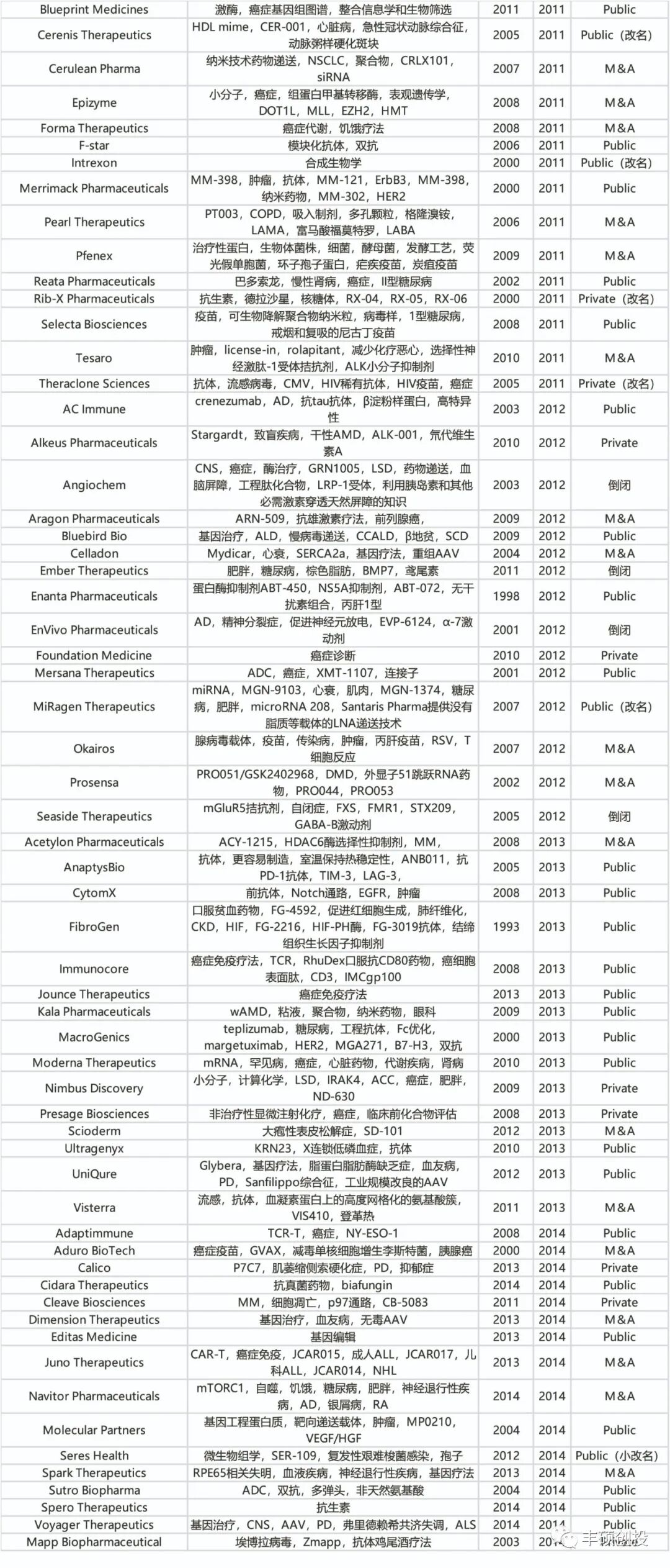 每一届fierce 15名单的biotech,很大程度上体现了当下的前沿技术与投资风向。整体上看这些biotech,虽然有超过1/3的公司能够将药物推向市场,但其中得经历许多挫折,只有长期陪伴的投资者才有可能享有这么高的概率。