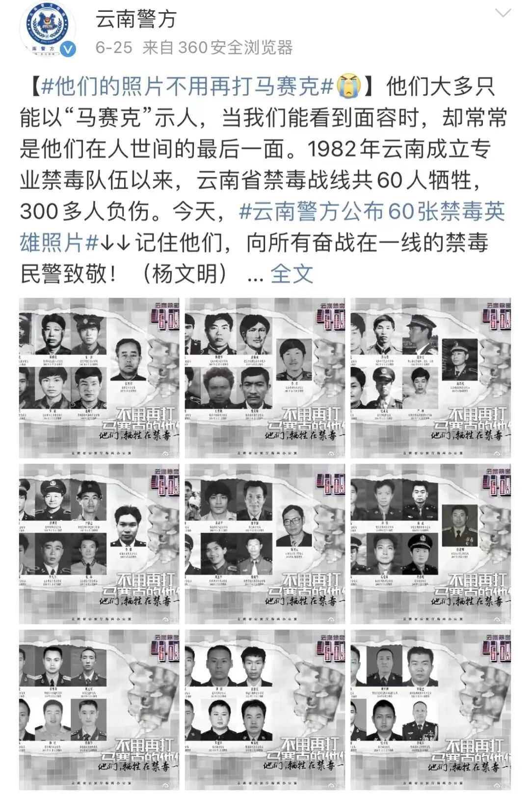 不知道这些人有没有看过,前不久云南警方公布的60张禁毒英雄的照片。