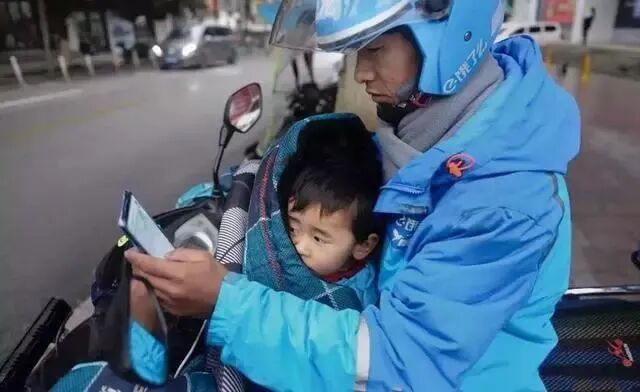 单亲爸爸李帮勇,为了养活和照顾女儿,于是带着女儿一起送外卖。