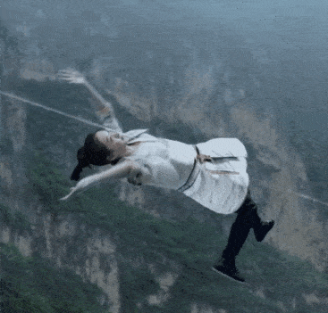 团队一商讨,二勘景,最后在山涧险峰设置空中轨道,才正式开拍。