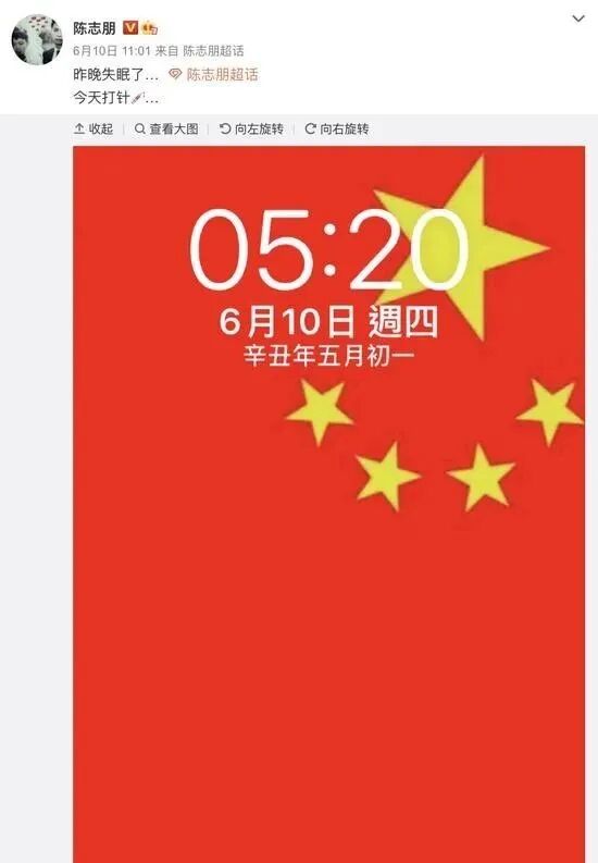 6月10日,前“小虎队”成员陈志朋在个人微博中晒出了自己在大陆接种疫苗的视频,配文:“打完第一针……谢谢!母亲的疼爱……”。