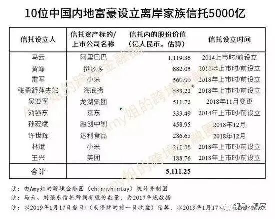 根据公开报道,在中国已经有10位顶级富豪,将累计5000亿的资产转移到离岸信托中。其中就包括马云、刘强东、王健林、孙宏斌、雷军等知名企业家。2014年,京东赴美国纳斯达克上市,公司注册地为开曼群岛,这个地方大家想必都听说过。就在上市前3天,刘强东所持的京东股权,全部转变成其创立的离岸家族信托持股。截至2019年底,总值达333亿人民币。截至2019年,马云持有阿里巴巴167159739股权益,但其中只有0.2%在马云个人名下,另外的99.8%全部以离岸家族信托、海外慈善基金会、开曼控股公司形式控制。其中离岸信托独占其中的64.4%,当时的市值为1119亿人民币。离岸信托,简单来说,就是一个中国公民在中国以外,设立的一个信托机构。富豪们把自己名下的股票、房产等转给这个信托机构之后,他们在中国就变成了没剩下多少钱的“穷人”。但是,千亿富豪们仍可以通过别的方式,管理这些信托资产。之所以如此多的富豪,都选择将一部分资产转入离岸信托,就是因为离岸信托有很强的保护作用,能够在个人资产和信托资产中间树立起一道屏障:不论国内发生任何情况,都不会对离岸信托中的资产造成影响。离岸信托中股权所对应的财富,从法律上来讲都不是属于富豪个人的,在征税上也就没有划分在应征税额范围内,能够很好的避税。另外,离岸信托中的资产,只要配偶不在家族信托受益人的名单里,那么离婚后配偶是无法分割其资产的。而且,即使这些富豪生意上遭受什么损失,或者遇到其他的情况,变成一无所有的穷光蛋,离岸信托中的资产依然不会有损失。最后,离岸信托可以规避企业在继承过程中因为复杂的继承程序,而出现高额的税收,这样的损失往往大的惊人。布局英国、迁址开曼、资产转移至家族信托,李嘉诚为此准备了20年。网上流传的一个段子:几位顶级富豪和李嘉诚一起比赛,大家都觉得李嘉诚老了腿脚不好,结果他跑了第一。“我今年87岁了,已经是古稀之年,安全比利润对我来说更重要。我从来就不是大家说的是什么超人,我可能算是一个成功的商人,但我其实更是一个普通的人,甚至是一个老人。”“我希望我的人生,能画上一个完美的句号,而不想在晚年横生枝节。我也希望我的家人和我的商业在我故去之后,正常运转,得到良好的继承。”据世界财富研究机构发表的数据显示,中国目前拥有千万资产的有206万人,拥有亿万资产的有14.5万人。在千万、亿万富豪中,当然没有工薪阶层的劳动者,更不会有农民工的身影。他们有的是官家权贵,有的是黑道大亨,有的是商业精英,有的是炒房高手……![]()