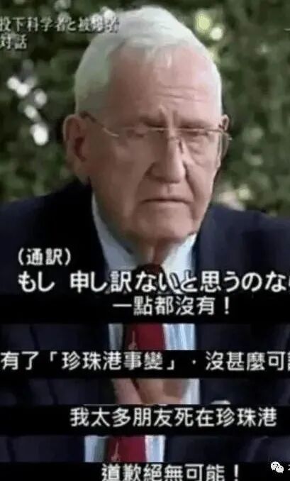 “我不会感到抱歉,真正应该感到抱歉的是你们日本人,我的很多同胞们的生命止于珍珠岛,我想你们才应该反省,至于能让你们活着,已经是非常幸运了!”