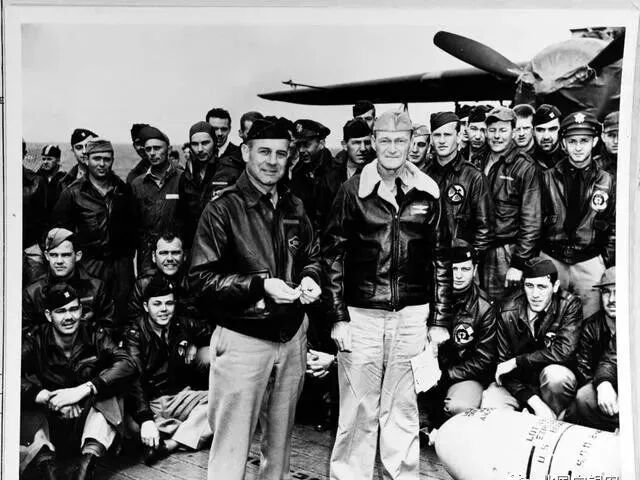 搭载了16架B-25轰炸机和80名机组乘员的"大黄蜂"号航母,秘密地从旧金山出航。