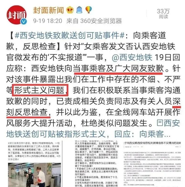 只能说,上一次的创可贴摆拍事件还没有让西安地铁吸取教训,这一次,不知西安地铁又要如何开展作风服务大提升活动呢?
