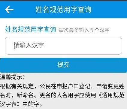 点击【姓名用字规范查询】