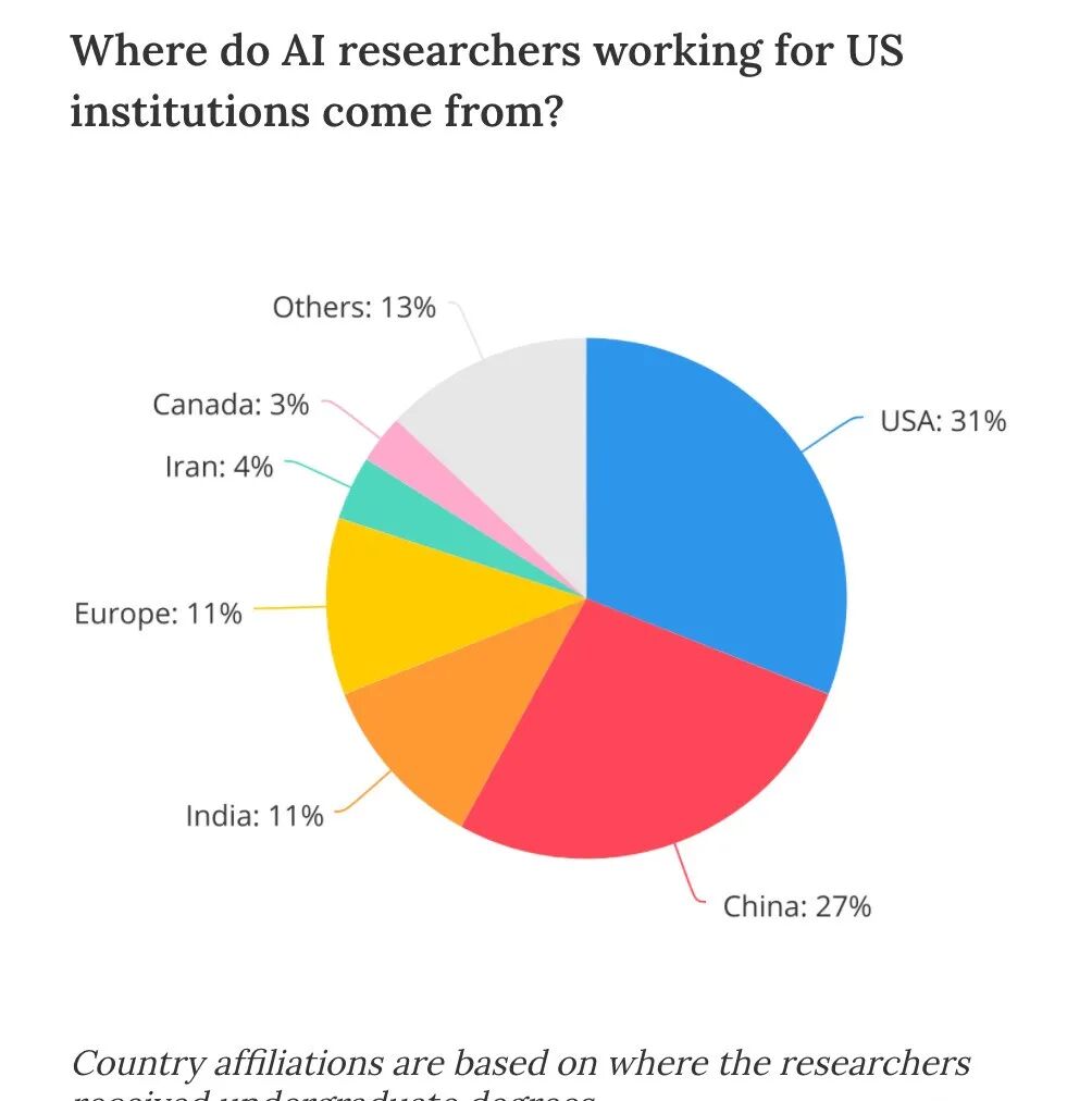 最后在美国拿到博士学位的中国AI研究员,88%的人选择留下来在美国工作,只有 10%会回到中国。