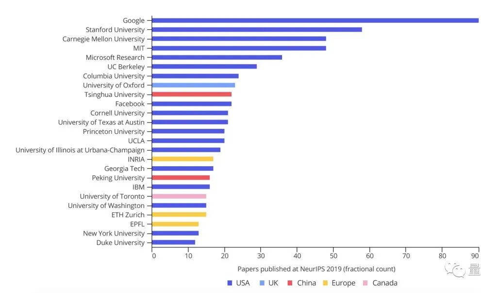 毫无疑问,在这样顶会论文的统计中,美国领先优势再明显不过。