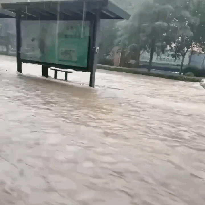我们看到马路被淹了: