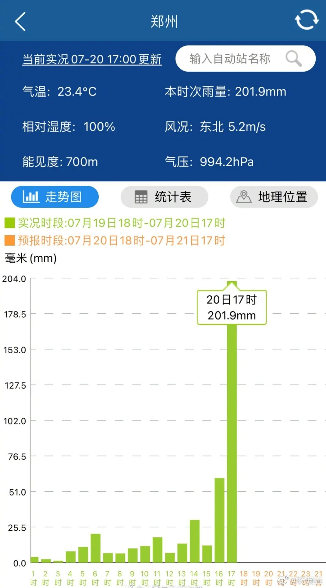 当时的科隆地区24小时下了154毫米的雨,而郑州在7月20日16-17时,仅一个小时的降水量就达201.9毫米。