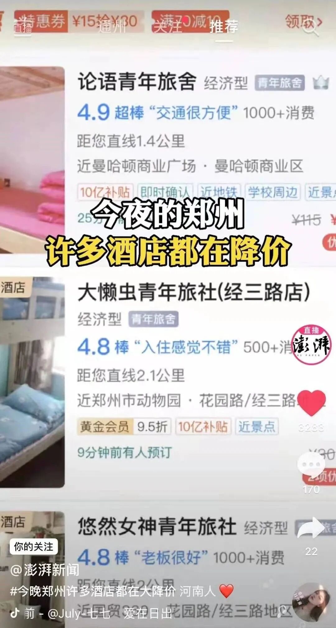 遇到灾难,西方国家的很多酒店趁机涨价,而一夜之间,郑州的酒店全部降价。
