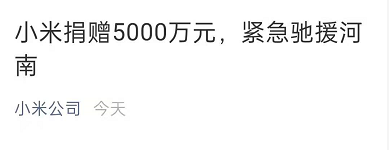 小米宣布5000万驰援河南: