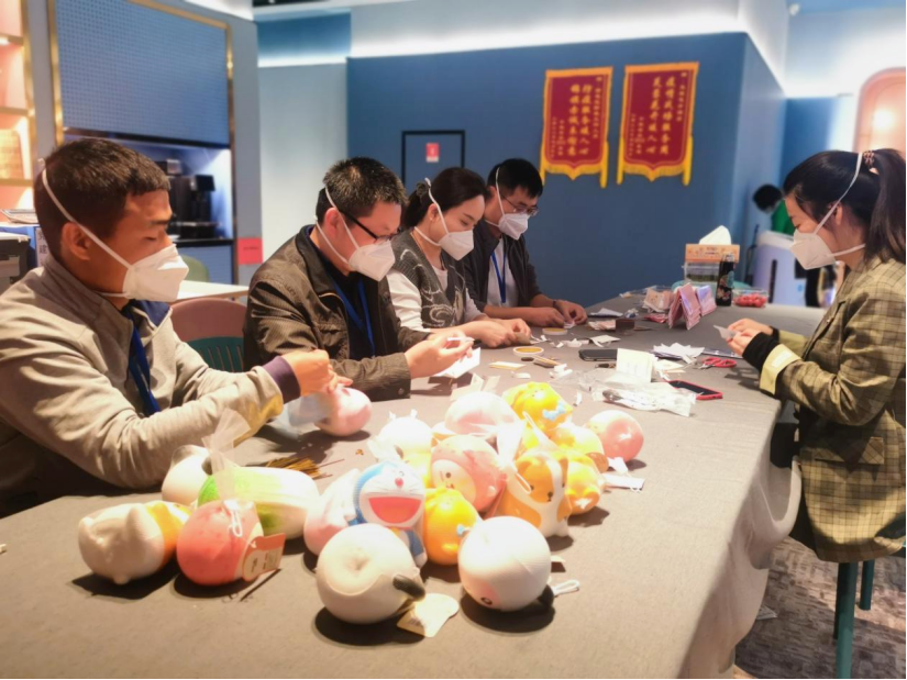 因为有上千名学生入住隔离酒店,防疫组的工作人员为孩子们准备了减压的小玩具。