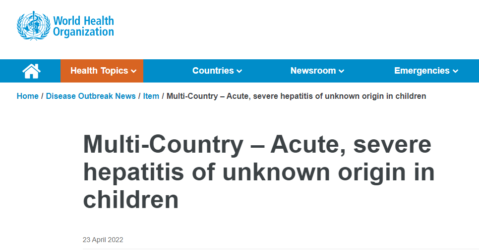 在25日,我国临近的日本,也疑似出现了首例患有这种不明急性肝炎的儿童。不免让人想起,之前世卫组织就是这样公布在武汉发现的“不明肺炎”,至今与我们已共存了三年......起初,这种不明肝炎是今年1月在英国被人发现,之后西班牙、丹麦、爱尔兰、荷兰、美国、意大利、以色列等国也报告了相关病例。据美国疾控中心的通报,美国早在2021年的10月就发现了首例不明原因肝炎的儿童病例。当然,如果只是普通肝炎,可能还不会引起各国的重视,因为儿童患上轻度肝炎比较常见,治疗起来也不算困难。