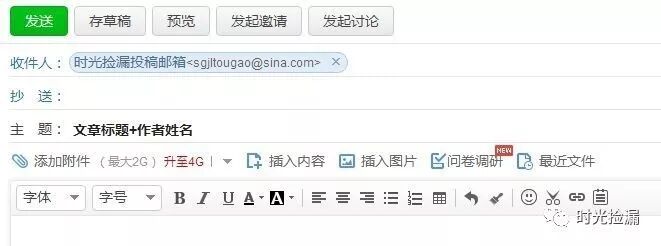 6.按照稿件投递的先后顺序,组稿编辑进行初审,经编辑讨论后,决定是否发表。编辑审阅工作将在收到投稿后10个工作日内完成。稿件一经推出,作者可自行订阅“时光捡漏”公众号查看。若自投稿日起10个工作日内未推出即视为稿件不予采用。