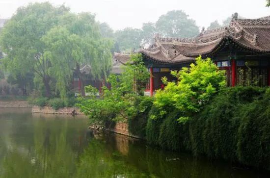 信步拾级而上,登临一览亭,万般春色尽收眼底。远眺,青山依稀缥缈;南瞰,碧绿无垠的麦田令人心旷神怡;眼底,湖水微漾涟漪,柳条雨中梳起云鬓,湖倒映着柳,柳依偎在湖的怀抱,好一幅琴瑟和鸣的春之美景。几处桃红和淡粉点缀于碧波中,远处,芳草萋萋中疏疏落落地嵌着几户人家。浅浅的绿盈荡心头,淡淡的香扑鼻而来。清亮婉转的笛声和着鸟鸣不绝于耳。这早春的东湖,这东湖的早春。东湖,这颗镶嵌于雍城中心的西府明珠,曾点燃过多少文人墨客的诗心?历经千年的风霜雪雨,如今依然风韵犹存。我常想,如果没有了这一湖碧水、这一岸细柳,这一拱石桥,秦的后人该是何等的寂寞?