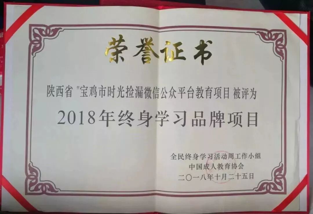 2018年10月,被宝鸡市教育局授予“宝鸡市终身学习品牌项目”