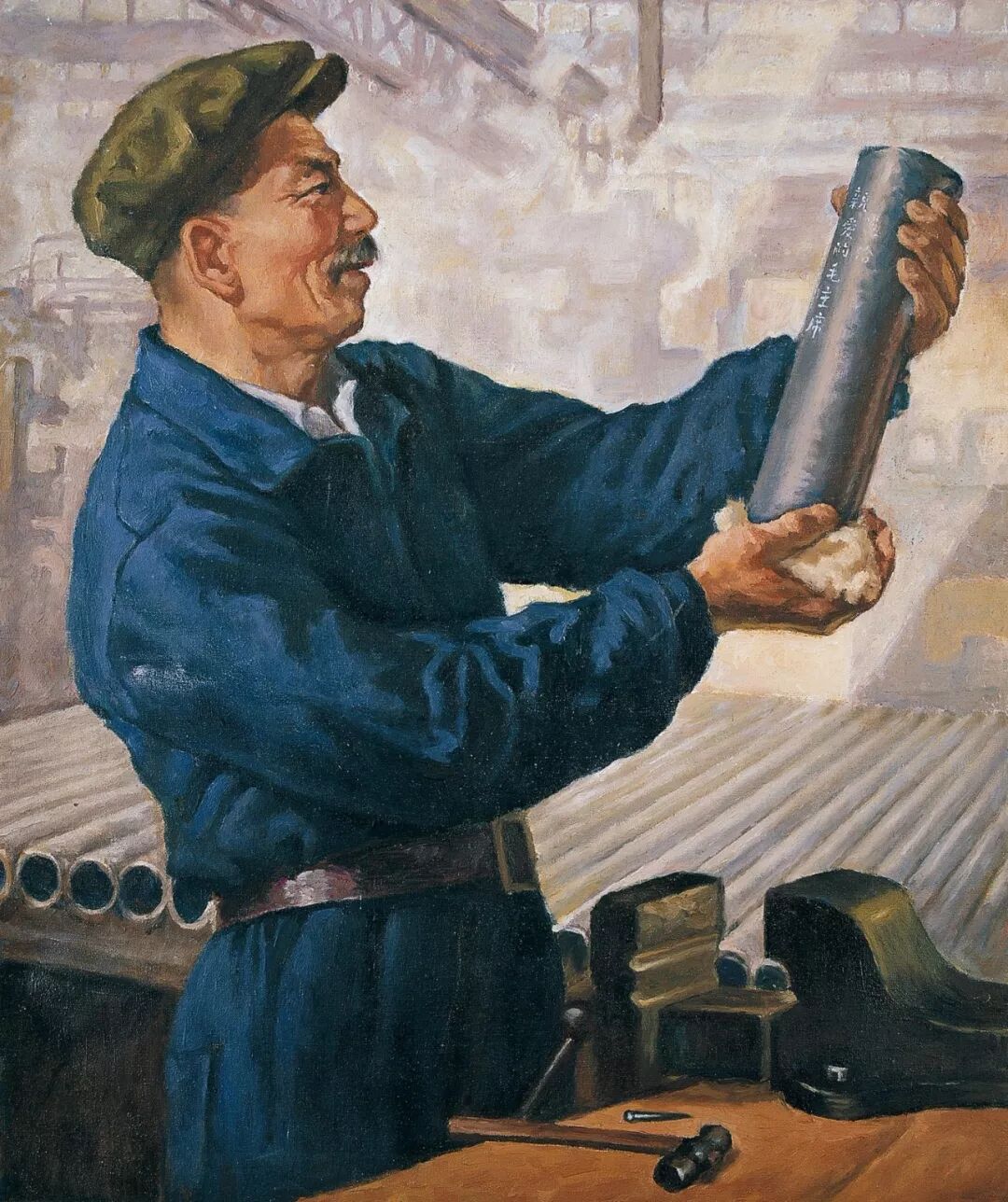 靳尚谊、傅植桂,《把第一根无缝钢管献给毛主席》,布面油彩