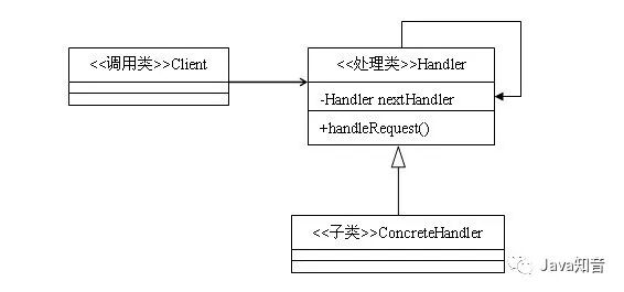 责任链模式的类图非常简单,它由一个抽象地处理类和它的一组实现类组成: