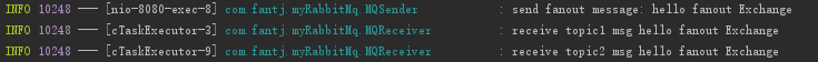 sender.sendFanout("hello fanout Exchange");