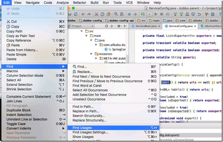 IntelliJ IDEA的"Find Usage"可以查看一个Java类、方法或变量的直接使用情况。