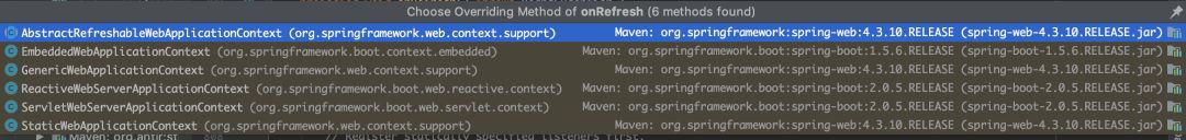 这点代码似曾相识啊 没错,就是一个spring的bean的加载过程我在,解析springIOC加载过程的时候介绍过这里面的方法,如果你看过Spring源码的话 ,应该知道这些方法都是做什么的。现在我们不关心其他的,我们来看一个方法叫做 onRefresh();方法