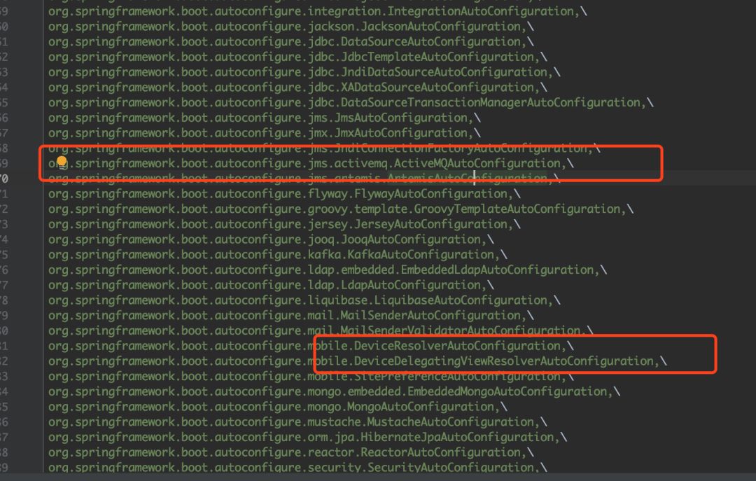 我们可以发现帮我们配置了很多类的全路径,比如你想整合activemq,或者说Servlet