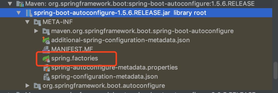 这个类回去寻找的一个目录为META-INF/spring.factories,也就是说他帮你加载让你去使用也就是在这个META-INF/spring.factories目录装配的,他在哪里?