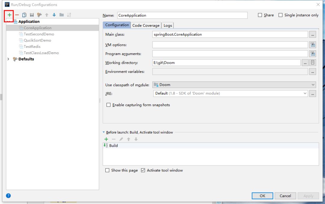 在IDEA中,点击Edit Configuration按钮。