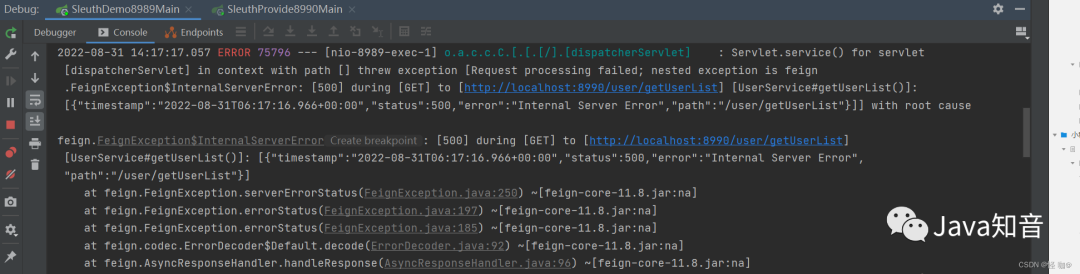 这里我会搭建两个服务,一个是8989服务,一个是8990服务,然后8989服务的一个接口当中调用了8990当中的接口!
