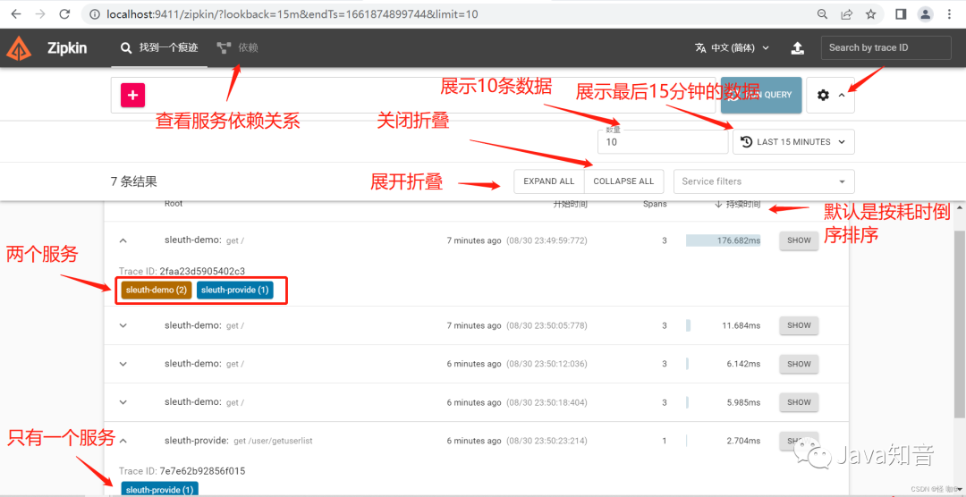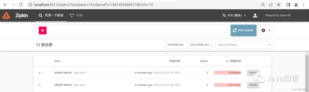 Spring Cloud Sleuth对于分布式链路的跟踪仅仅是生成一些数据,这些数据不便于人类阅读,所以我们一般把这种跟踪数据上传给Zipkin Server,由Zipkin通过UI页面统一进行数据的展示。